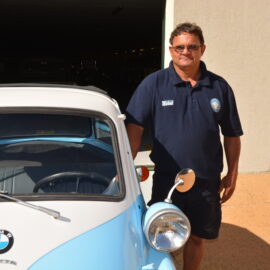Michael van Graan, the workshop’s resident automotive cosmetic surgeon, was tasked with the restoration of the little Isetta. It was decided to use it as a mascot for the annual L’Ormarins Queen’s Plate, so the colour had to suit the event’s traditional theme of blue and white.