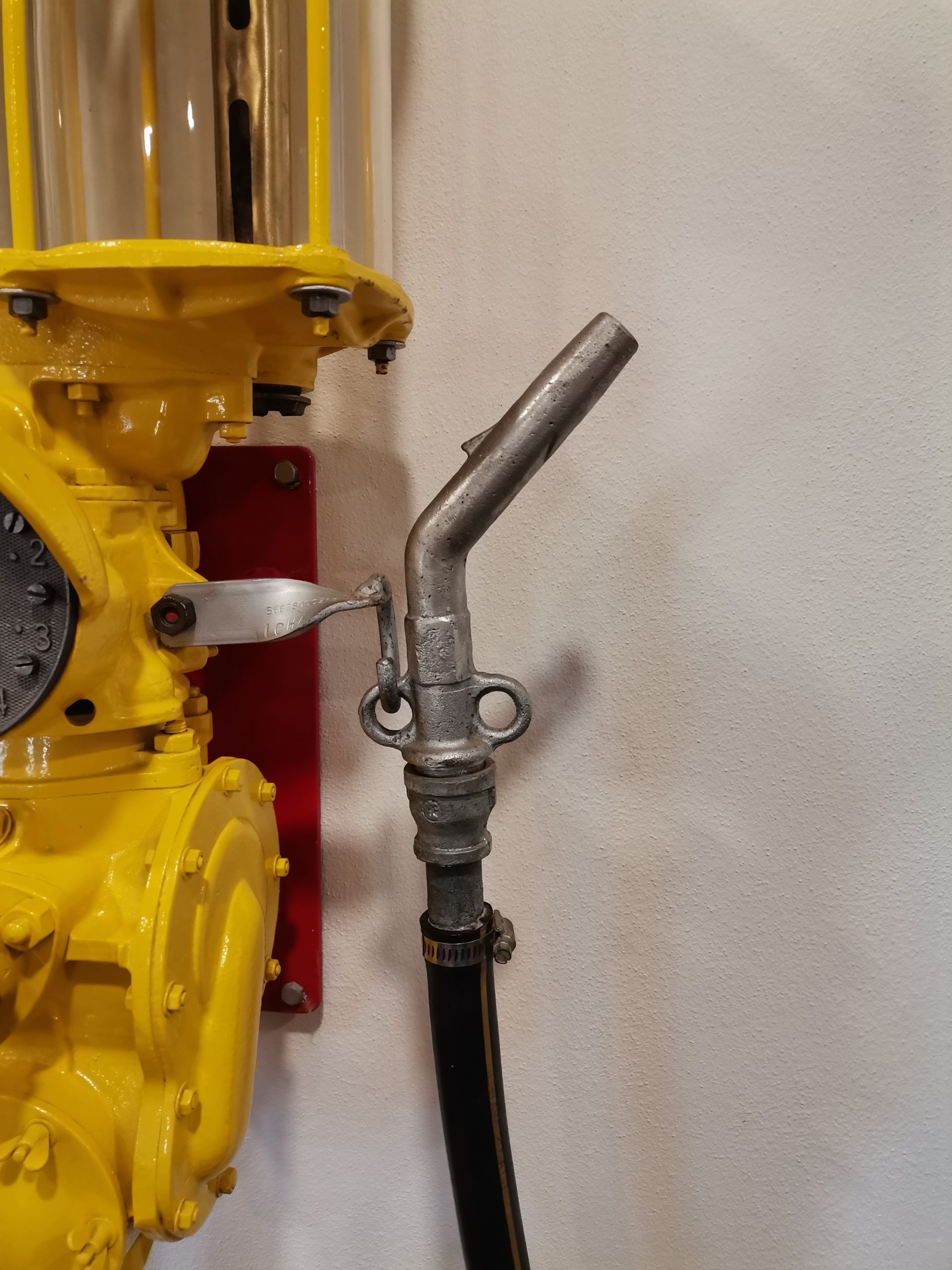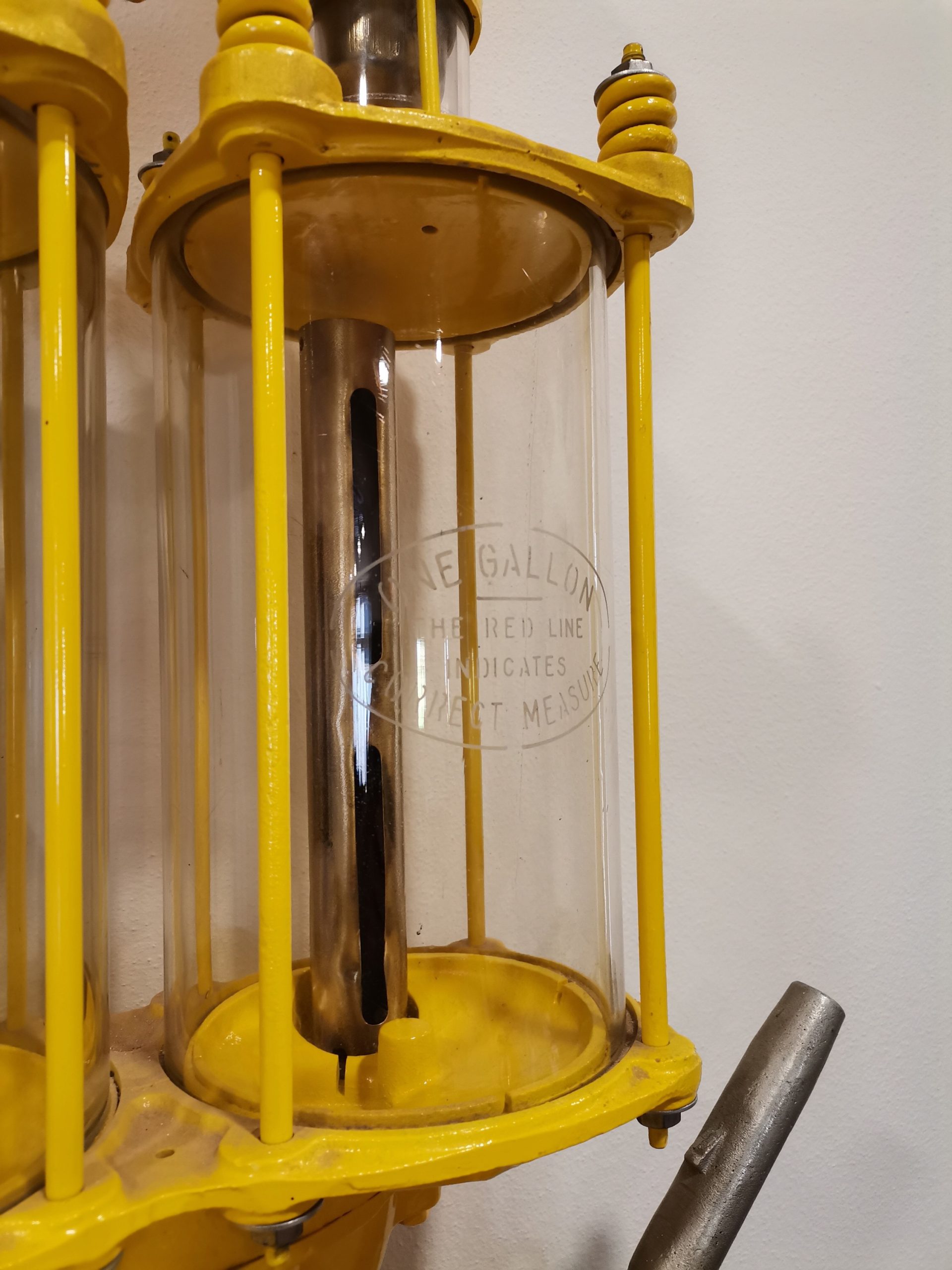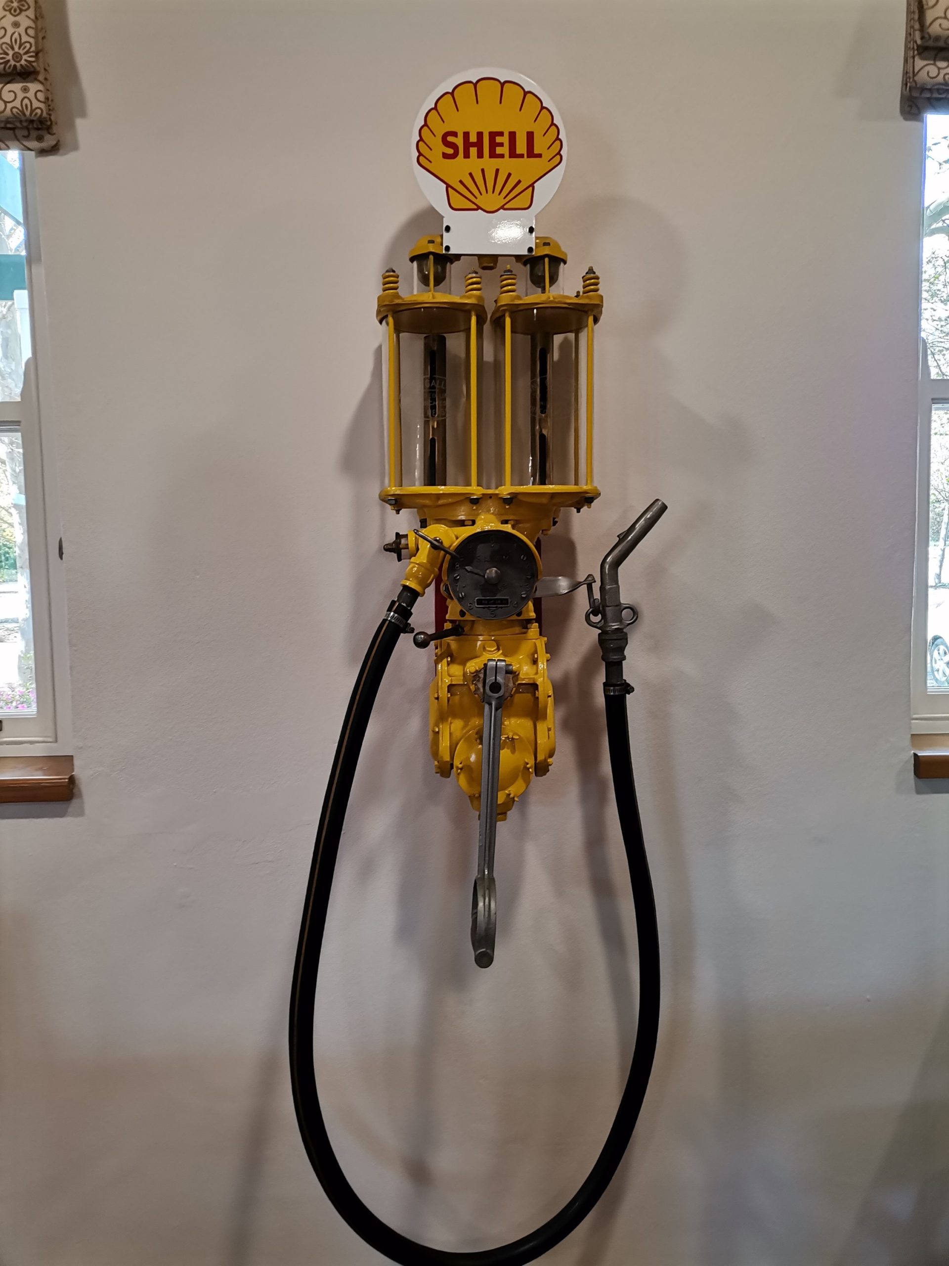 FMM has a wonderful collection of old fuel pumps, and one of the best restored examples can be found in the museum’s Deli. It is a wall-mounted pump worked by hand cranking the fuel up into the glass measuring vials and then being dispensed by gravity feed directly into a motor vehicle through a hose and nozzle. The vials are marked with gallon measurements to show the volume being dispensed, as well as allowing the motorist to see the quality and clarity of the fuel.