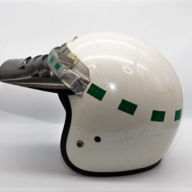 With each year of racing, there are minor adjustments and innovations to increase the overall safety of helmets, as well as their comfort. When it comes to helmets, FMM has a lovely historical collection, from leather caps and goggles, which can be seen in the John Love display in Hall D, through to examples of rubber and cork helmets and, of course, several more modern designs that range from the 1970s through to the 1990s.