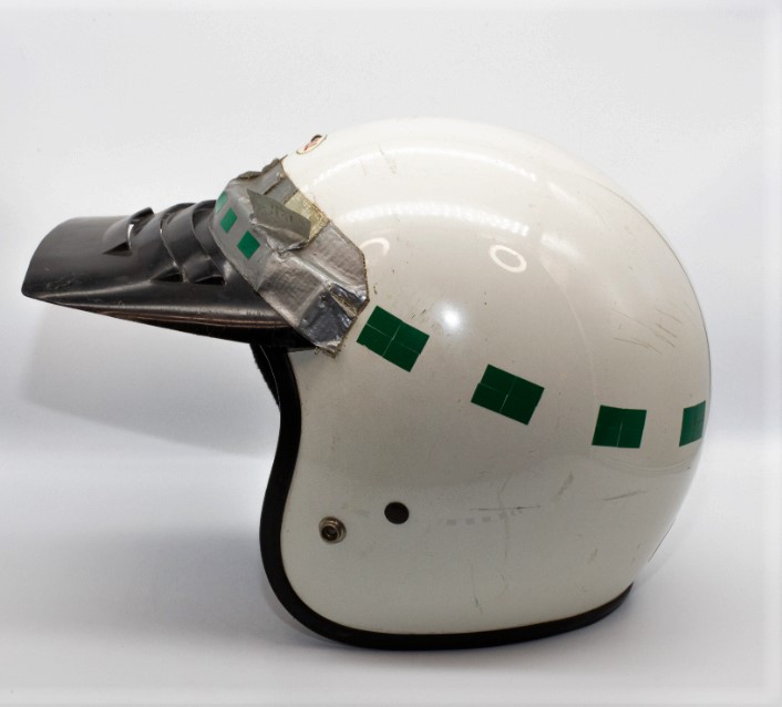 With each year of racing, there are minor adjustments and innovations to increase the overall safety of helmets, as well as their comfort. When it comes to helmets, FMM has a lovely historical collection, from leather caps and goggles, which can be seen in the John Love display in Hall D, through to examples of rubber and cork helmets and, of course, several more modern designs that range from the 1970s through to the 1990s.