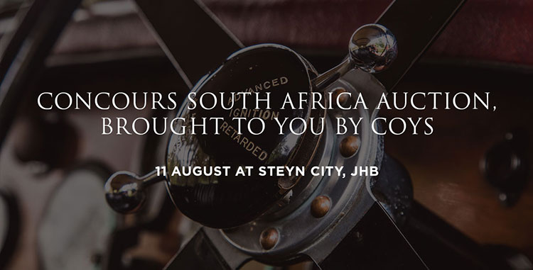 The Concours South Africa Auction, brought to you by Coys, takes place on Saturday 11 August at Steyn City. This international classic car auction features over 70 collector cars from “The Plit Portfolio”, arguably one of Africa’s most significant motor car collections.
