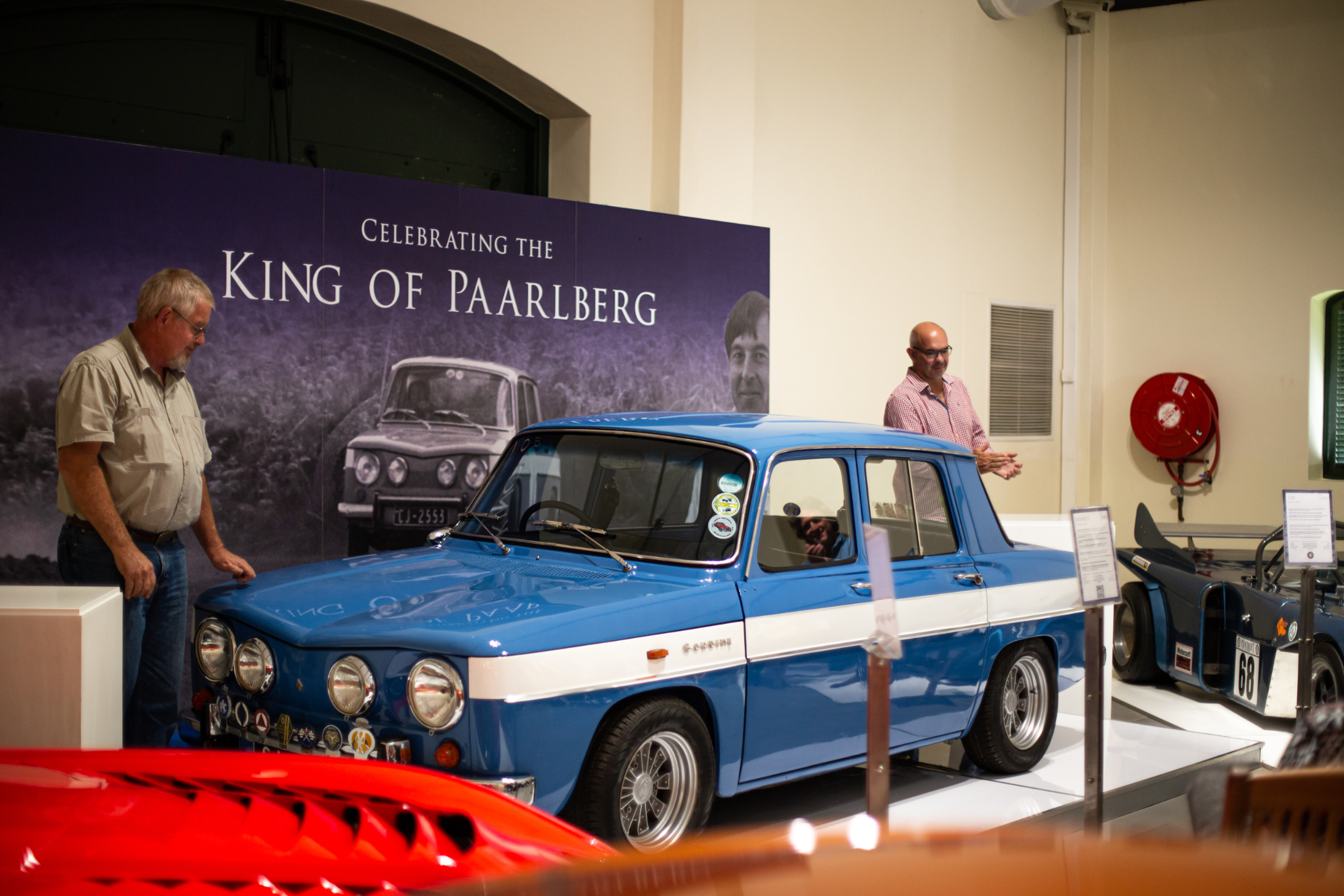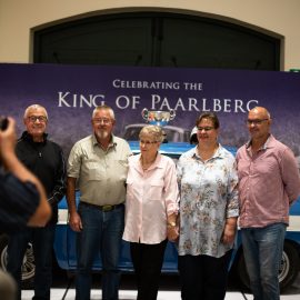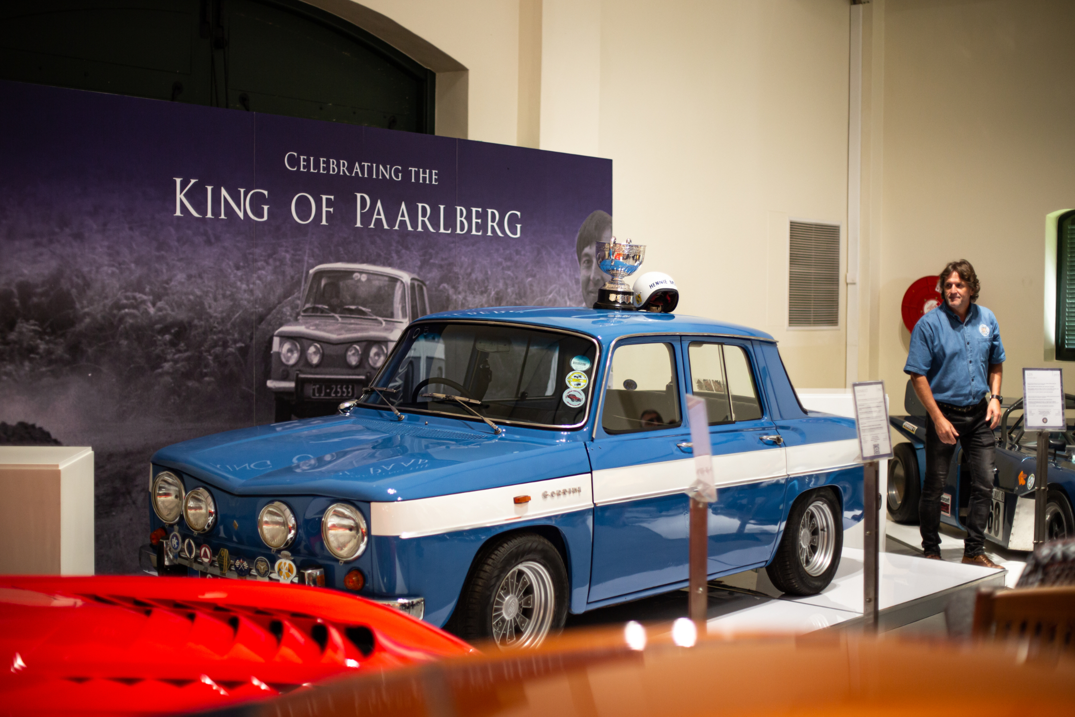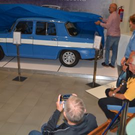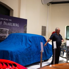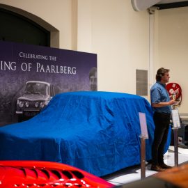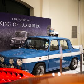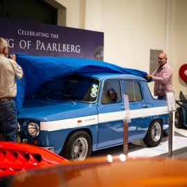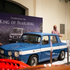 In 2022, the Franschhoek Motor Museum was honoured to receive the donation of the Renault R8 Gordini 1300 with which the late Hennie Mostert dominated the challenging Paarl Hillclimb from 1968 to 1972, earning the title ‘King of the Paarlberg’. On Sunday 26 March, family, friends and members of the Cape Town Renault Club gathered at the museum’s Hall D for the unveiling of a special permanent display stand for the car. Hennie’s brothers and other close friends gave short speeches relating to his motor sport career before the wrap was taken off the gleaming blue-and-white Gordini. Posed in front of a giant poster showing Hennie at full throttle on the Paarl Mountain, the car is a victorious part of Cape motor sport history and a fine addition to the museum’s collection.