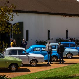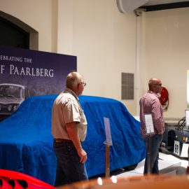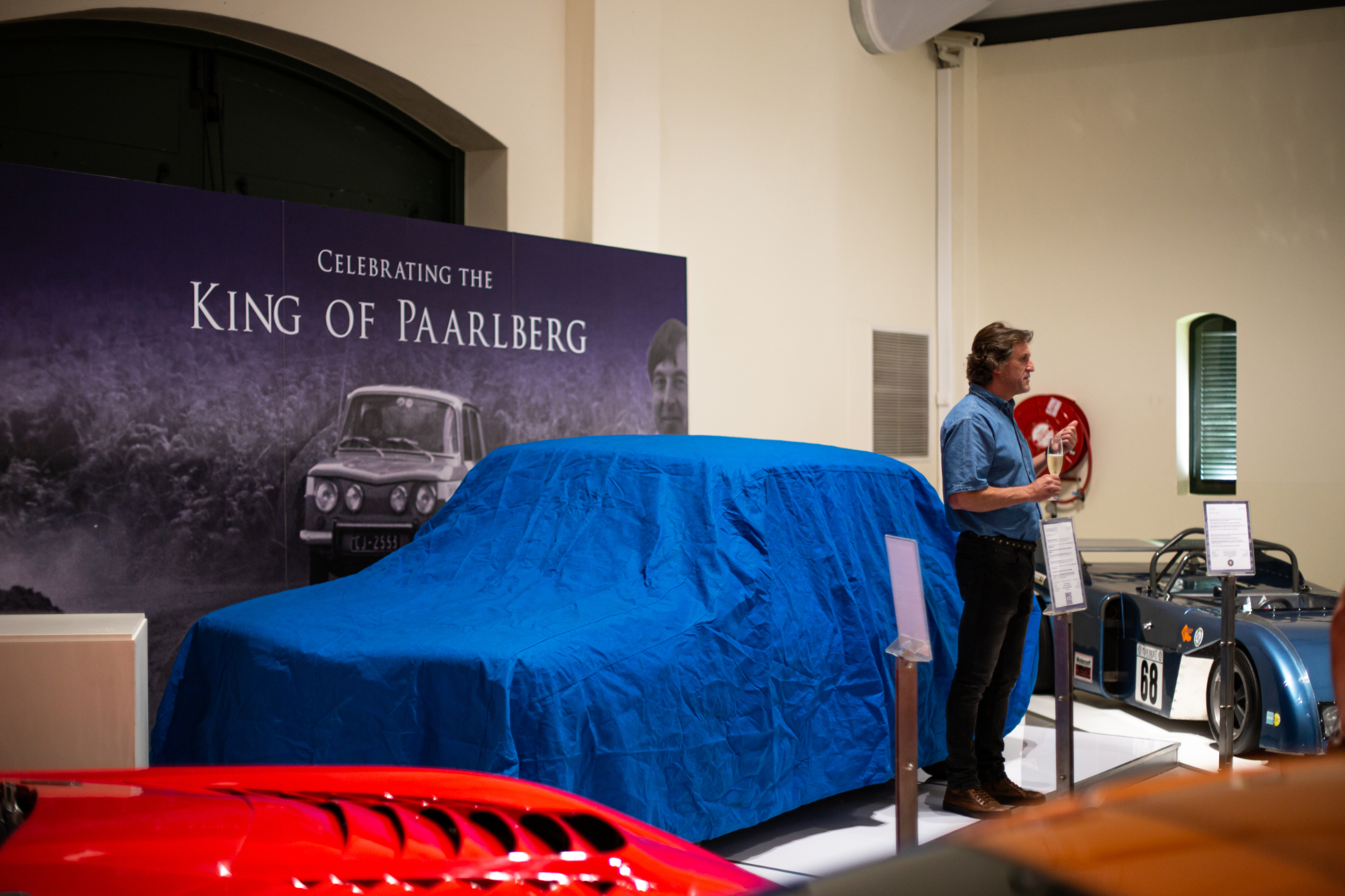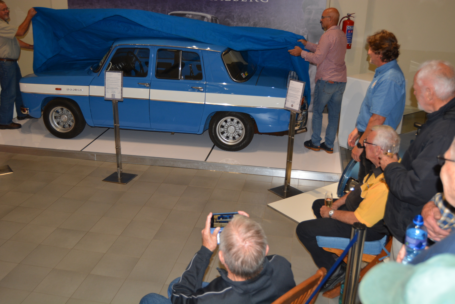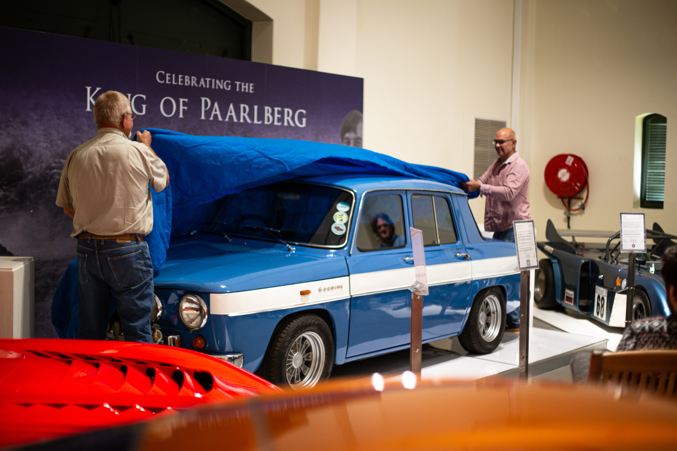 In 2022, the Franschhoek Motor Museum was honoured to receive the donation of the Renault R8 Gordini 1300 with which the late Hennie Mostert dominated the challenging Paarl Hillclimb from 1968 to 1972, earning the title ‘King of the Paarlberg’. On Sunday 26 March, family, friends and members of the Cape Town Renault Club gathered at the museum’s Hall D for the unveiling of a special permanent display stand for the car. Hennie’s brothers and other close friends gave short speeches relating to his motor sport career before the wrap was taken off the gleaming blue-and-white Gordini. Posed in front of a giant poster showing Hennie at full throttle on the Paarl Mountain, the car is a victorious part of Cape motor sport history and a fine addition to the museum’s collection.