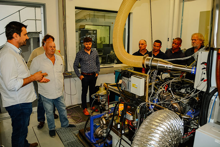 FMM is currently preparing for display a Yamaha FZR1000 that was used by local fuel and energy giant Sasol to develop racing fuels and which, incidentally, has only 11 km recorded on the odometer! Adding to the excitement, plans are afoot to have a Hart 3,5-litre V10 engine as used by the Sasol Jordan F1 racing team to join the bike. As part of the growing cooperation with the museum, during March Sasol invited FMM to its laboratory in Capricorn Park, Muizenberg to view the testing facilities. Curator Wayne Harley together with workshop personnel Lorenzo Farella, Deon de Waal, Donny Tarentaal, Wentsley Wicomb, and Stefan Klein along with media consultant Mike Monk took the opportunity to tour the plant with Sasol’s Senior Technical Advisor Andre Velaers and Research Engineer Tiaan Rabie. The tour gave a fascinating insight into the development of automotive fuel and much was learned from the Q&A interaction that took place throughout the morning.