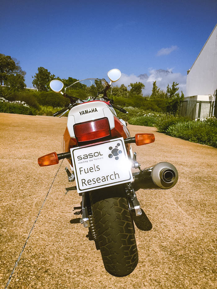 The answer lay with the FZR 1000 motorcycle engine, which was ideal for testing fuel consumption, burn rates, temperatures, performance etc, and the test mule is the bike you see here. For many years the FZR was stored at Sasol’s test laboratories until a couple of years ago Gareth Floweday, a senior engineer at the Sasol Energy Technology Group, offered the bike to FMM and we readily accepted this awesome machine. When taking delivery, I was surprised to see that the Yamaha only had 11 km on the odometer, making this beautiful survivor a prime example of an early-’90s superbike while its provenance is another great symbol in SA’s proud motoring heritage.